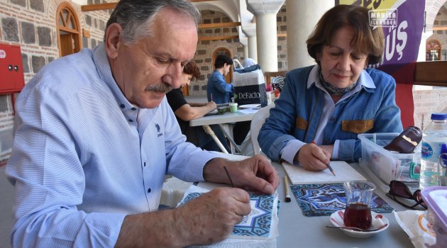 Şehzadeler Belediyesi’nin tarihi Kurşunlu Han’da açtığı ücretsiz geleneksel el sanatları kurslarından Çini kursuna katılan, 45 yıllık evli Aysun- Samim Baylan çifti, Şehzadeler Belediye Başkanı Ömer Faruk Çelik ve Şehzadeler Halk Eğitim Merkezi yetkililerine vatandaşlara sağladıkları imkan nedeniyle teşekkür etti, vatandaşlara da tavsiyede bulundu. İki çocuk, dört torun sahibi çift “İnsanların ilerleyen yaşlarda mutlaka bir hobisi olmalı. Sanatın iyileştirici yönünden herkes mutlaka yararlan...
