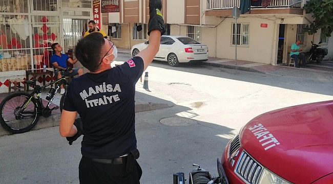 Manisa Büyükşehir Belediyesi İtfaiye ekipleri, Tevfikiye Mahallesi’nde bir eve girerek mahsur kalan kargayı kurtararak, özgürlüğüne kavuşturdu.
