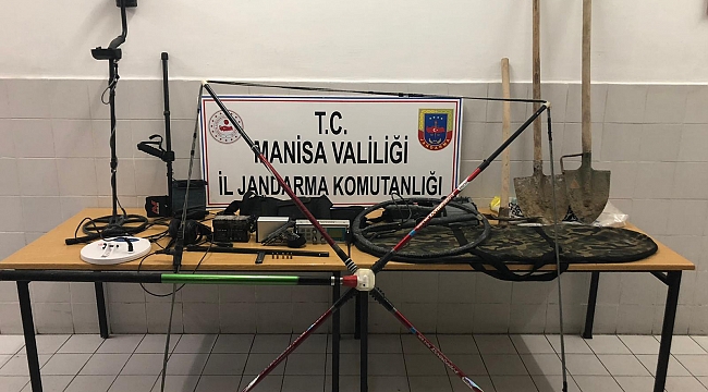Kırkağaç İlçe J.K.lığı ekipleri devriye sırasında, izinsiz kazı yapılan zeytinlikte Y.A.(39), İ.Ç.(39 ), Ş.G.(44), Ş.Ç.(37) ve C.S.(51) isimli şüpheliler yanlarında bulunan 3 adet dedektör, 1 adet kazma ve 2 adet kürekle suçüstü yakalandı.