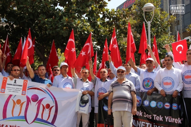Sofuoğlu’nun açıklaması anında, “Teröre karşı tek ses, tek yürek”, “Manisa uyuma şehidine sahip çık”, “Kahrolsun hainler, kahrolsun PKK” sloganları atılırken, konuşmanın ardından şehitler için dua edildi. Basın açıklaması İstiklal Marşı’nın okunmasının ardından sona erdi. Ellerinde Türk bayrakları ile meydanı dolduran onlarca Manisalı olaysız dağıldı.