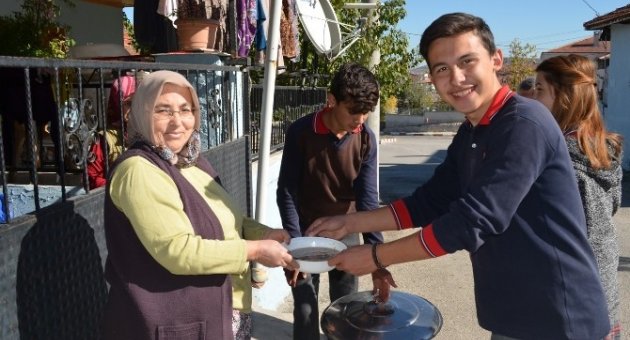Öğretmen Ve Öğrenciler Kapı Kapı Aşure Dağıttı