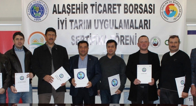 Alaşehir Ticaret Borsası tarafından ’İyi Tarım Uygulamaları’ projesi kapsamında ürün yetiştiren üreticiler sertifikalarını aldı.